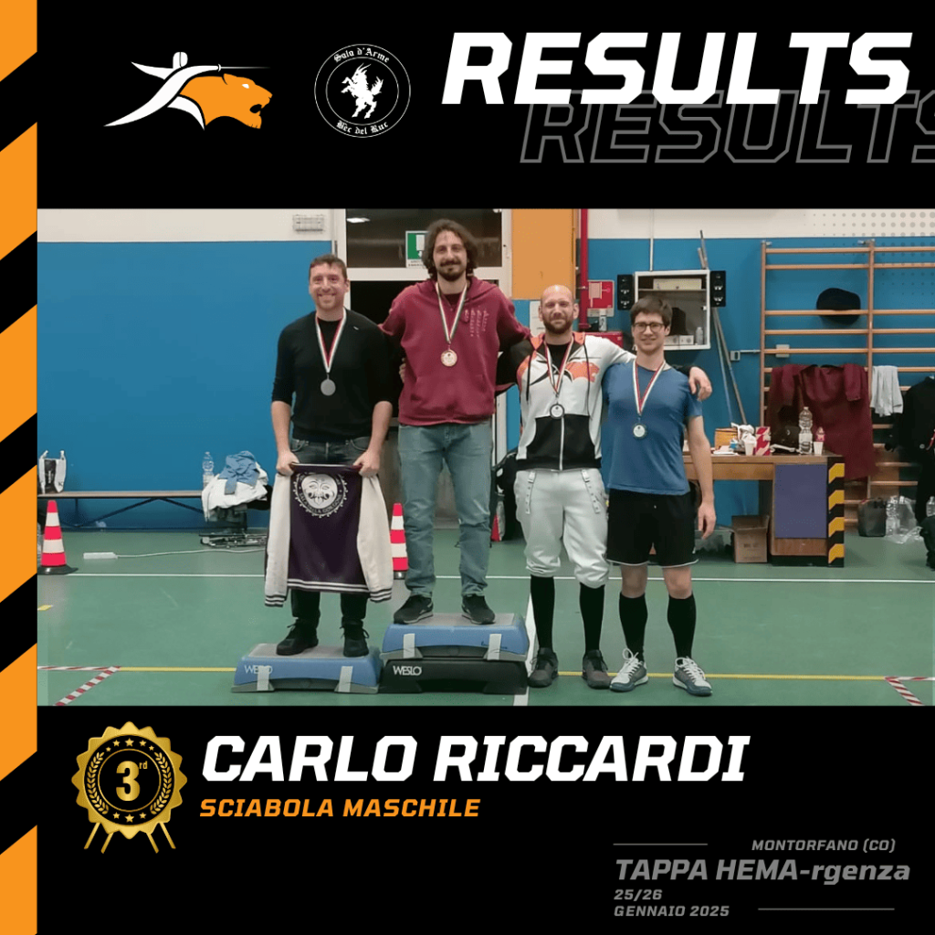 Risultati del weekend: 21º Campionati del Mediterraneo U15 – Vrsar (HR), 26/01/2025 -|||- Tappa Circuito Nazionale Scherma Storica HEMA-rgenza – Montorfano (CO), 25-26/01/2025.