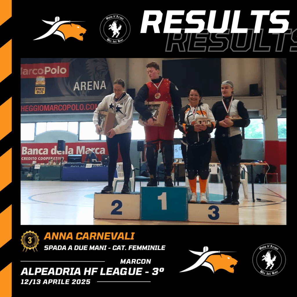 Lo scorso fine settimana si è svolta a Marcon (VE) la terza tappa dell’Alpeadria HF League, competizione dedicata alla scherma storica che continua a crescere per partecipazione e livello tecnico. Anche in questa occasione, i nostri atleti si sono distinti, conquistando podi importanti e confermando l’ottimo momento della squadra.