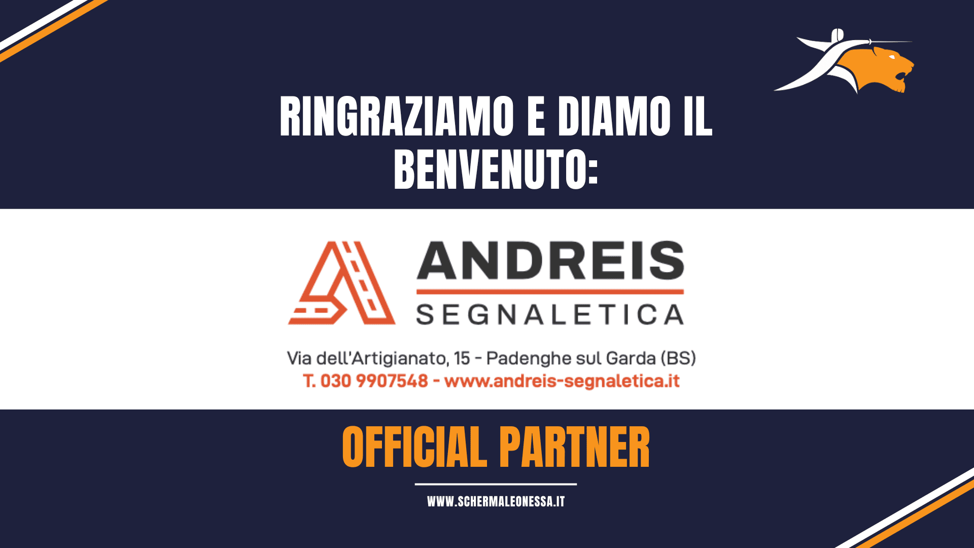 Diamo il benvenuto ad “Andreis Segnaletica” che supporterà le nostre ettività per un intero anno!